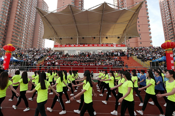 裁判员代表和运动员代表郑重宣誓。开幕式进入文艺表演环节,啦啦操、健身秧歌、梅花桩舞狮、敦煌拳等表演将开幕式气氛推向高潮,老师和同学们的精彩表演赢得了现场观众的阵阵掌声。