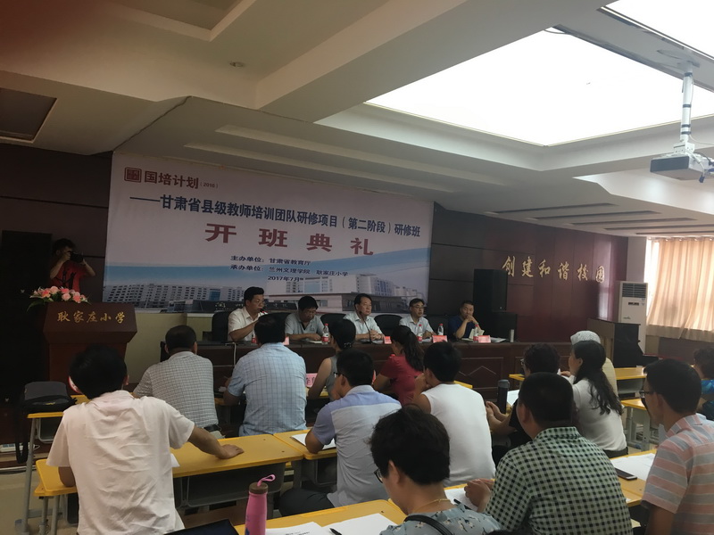 7月20日上午,“国培计划(2016)”甘肃省县级教师培训团队研修项目第二阶段Beat365唯一官方网站培训班开班仪式在耿家庄小学报告厅举行。师范学院院长、国培项目办公室主任董小平,协办单位耿家庄小学校长赵永忠,康乐县教育局副局长杨爱平,国培项目办成员,专家团队成员和临夏市、永靖县、康乐县参训学员200余人参加了本次开班仪式。开班仪式由师范学院党总支书记张明荣同志主持。
