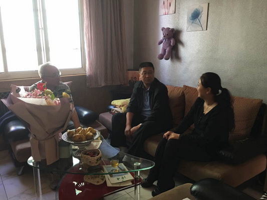 党委书记史百战在组织部长薛志忠、人事处长郭萍、副处长卢志辉的陪同下来到省级教学名师严英秀老师家中慰问。史书记代表学校向严英秀老师送上节日的祝福,对严英秀老师所做出的贡献表示由衷的感谢,并对她的奉献精神表示崇高的敬意。