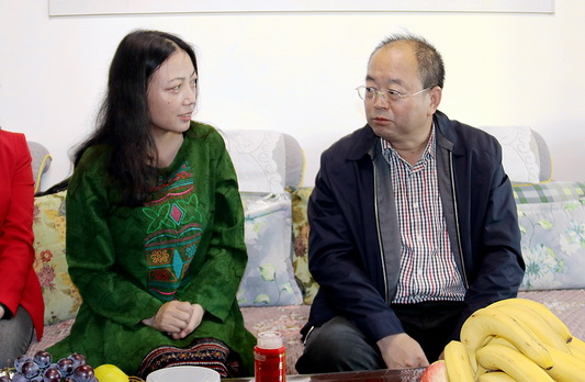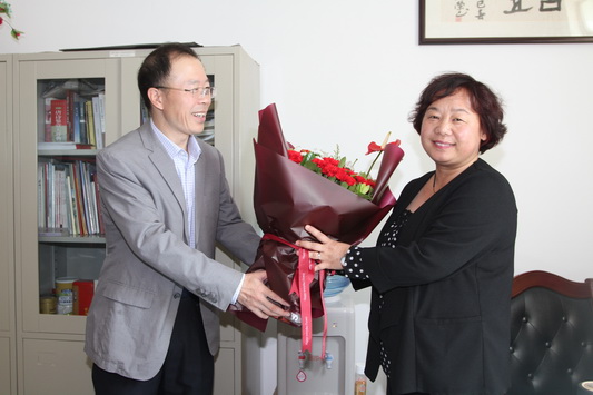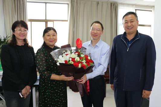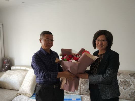 党委副书记普登学在组织部长薛志忠、宣传部长赵学森、人事处长郭萍的陪同下来到省“园丁奖”获得者、省级教学名师马晖和责任教授高亚芳的办公室。普书记代表学校向两位教师送上节日的问候和祝福,感谢她们为学校所做出的贡献。