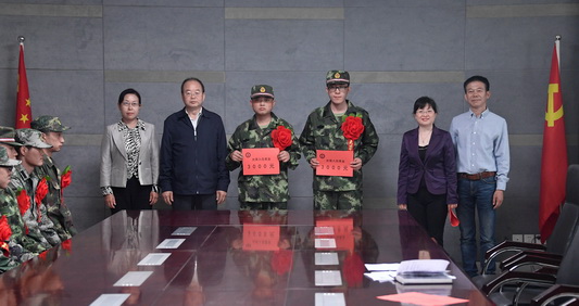 副校长张兆勤向各位应征入伍学生表示衷心的祝贺,并祝愿同学们在军营取得佳绩,履行当代大学生的责任和义务。