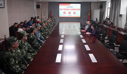 2017年9月13日上午,学校在第一会议室举行了2017年大学生应征入伍欢送会。校党委书记史百战出席会议并讲话,副校长张兆勤主持会议。人民武装部部长李宗刚、各学院书记和部分老师和应征入伍学生参加欢送会。