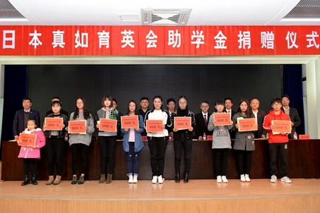 仪式结束后,日本真如育英会代表团一行和受助学生合影留念。