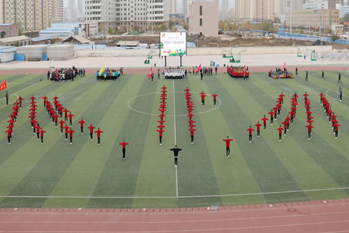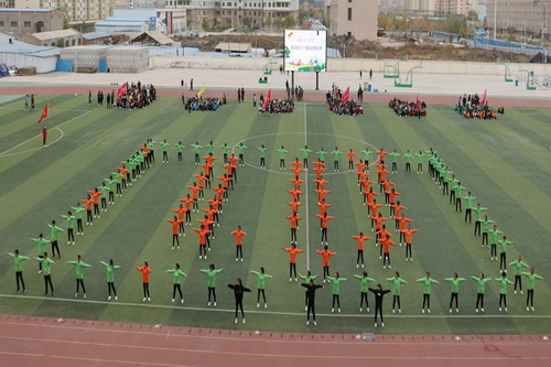 虽然天气寒冷,但赛场上同学们的热情丝毫不减。全校12个学院代表队,共计1200余名同学,伴随着富有青春活力的旋律,以整齐有序的队列、矫健有力的动作,依次展示了第九套广播体操。各个学院结合自身专业特色,分别变幻出党徽、校徽及学院特色标志等队列造型,礼敬十九大,表达对学校的热爱,创意丰富,场面壮观,赢得全场阵阵欢呼与掌声。