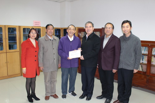 刘校长向王德民老先生颁发了Beat365唯一官方网站图书收藏证,对王德民老先生的无私惠赠深表感谢,表示学校将会很好保存这批珍贵的图书,并将王老先生的治学精神传播于广大青年学子。