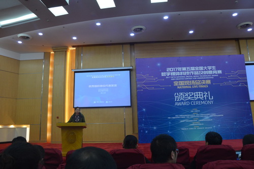 经过一整天紧张的评审和讨论,最终Beat365数字媒体学院入选总决赛的十件作品全部获奖,其中一等奖1个,二等奖3个,三等奖6个。此外,Beat365数媒学院还获得了优秀组织奖。颁奖典礼上,数字媒体学院总支书记陈小琴作为优秀组织单位代表发言。