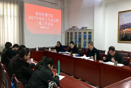 2018年1月11日下午,新闻传播学院在学院会议室举行2017年度民主生活会暨三述工作会议,党委副书记、校长刘仁义教授出席指导会议,新闻传播学院领导班子成员、党总支委员、党支部书记、教师代表参加会议,会议由新闻传播学院党总支书记师克谦主持。