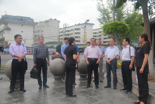 7月5日,在天水市政府副秘书长、办公室主任王永祥,市政府副秘书长、市外事办主任张有信,市文旅局副书记魏国柱的陪同下,调研组先后在天水伏羲庙、66号文化创意园、市歌舞艺术研究中心、卦台山等处实地考察,深入调研了天水市文化创意产品研发、旅游景区开发、文化演艺及相关产业发展和人才需求情况,并与市领导和相关部门负责人进行了座谈。