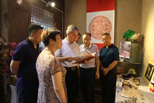 刘校长一行先后参观了由葫芦居(创业咖啡)、四方馆(路演大厅)、天工坊(创业工厂)、砚房会(创业成果与创意产品展示)等园区主要功能区,察看了创意秦州八景画、创意泥皮画、秦州文化陶、麦积山风情扎染、泥雕作品、旅游文化茶、手绘地图、历史穿越画等文创产品,并就园区发展现状、运营模式、管理机制、发展规划等方面进行了详细了解。