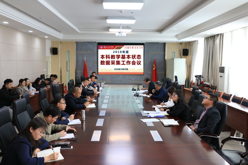 10月10日14:40,学校在综合楼第一会议室组织召开2018年度本科教学基本状态数据采集工作会议暨2019年教学类省财项目论证会,各二级学院、教务处、校办、科技处、人事处、国资处、发展规划处、招就处、学生处、信息中心、财务处、校团委、图书馆等相关职能部门数据采集工作负责及填报人员40余人、省财项目申报学院院长及项目负责人20余人参加会议,副校长张焱教授出席会议,会议由教务处处长薛怀庆教授主持。