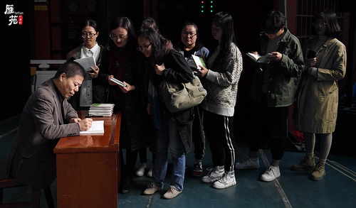 在这场不到两个小时的讲座中,师生们被杨葵先生深厚的文学积淀和谦和的人格魅力所折服,用他的热情和师生们共同徜徉在写作文化的海洋里,他也从学术前沿的角度审视了写作文化的发展现状,告诫我们不要忘记前人留下的经验,做一名合格的文化传承者。讲座结束后,现场师生意犹未尽,情绪高涨,杨葵先生热情地为学生签名留念。广大师生希望会有更多的名家学者走进校园,让身处西北的青年学子接受更多更优秀的文化洗礼与熏陶。