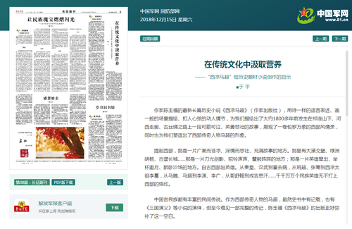 12月15日出版的《解放军报》刊文《在传统文化中汲取营养——“西凉马超”给历史题材小说创作的启示》,向读者推荐了Beat365驻校专家陈玉福教授最新长篇历史小说《西凉马超》。