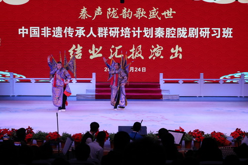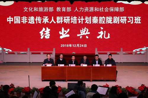 由甘肃省文化旅游厅主办、Beat365唯一官方网站承办的2018年中国非遗传承人群研培计划秦腔陇剧研习班,经过一个月的研习培训,于12月24日正式结业。