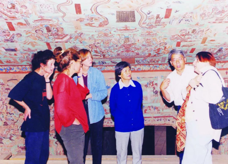 1998年,樊锦诗与国外学者探讨壁画修复方案。