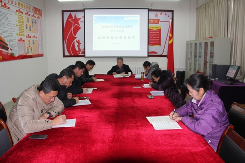 2019年1月9日下午,社会体育学院党总支在学院党员活动室召开了2018年度领导班子民主生活会。张焱副校长参加并指导了民主生活会,学院班子成员、党总支委员、教师代表参加,会议由党总支书记陆克珠主持并代表班子做剖析。
