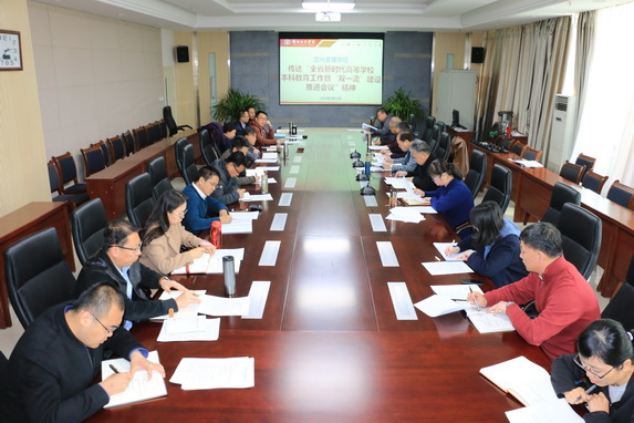 3月13日,学校在综合楼第一会议室组织召开“全省新时代高等学校本科教育工作暨‘双一流’建设推进会议”精神传达会及新学期第一次教学工作会议,统筹部署2019年度学校教学重点工作,安排推进迎评促建工作。张焱副校长出席并主持会议,教务处相关负责人、各二级学院院长、教学副院长共20余人参加会议。