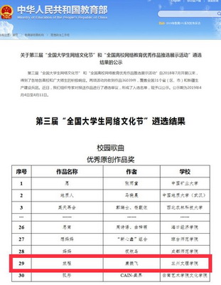 近日,由教育部思想政治工作司、中央网信办网络社会工作局主办,中国大学生在线、文汇报社、易班网承办,人民网、千龙网、中国好网民互动平台协办的第三届“全国大学生网络文化节”获奖作品名单公示落下帷幕。由校团委推选的Beat365康振飞同学的作品《旅程》荣获“校园歌曲优秀原创作品奖”。