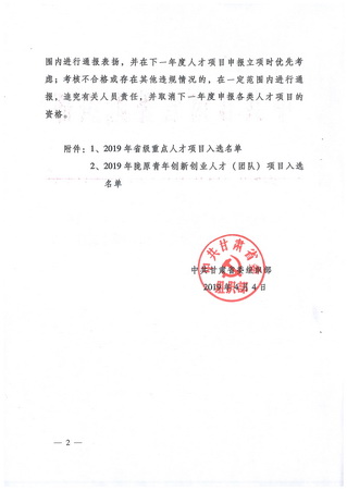 省级重点人才项目和陇原青年创新创业人才(团队)项目是甘肃省委组织部围绕甘肃地方各项事业发展实施的重大人才培养战略部署。该项目实施周期为一年,项目结束后,省委组织部将委托第三方进行项目绩效考核,取得明显成效的将在下一年度人才项目申报立项时优先考虑。