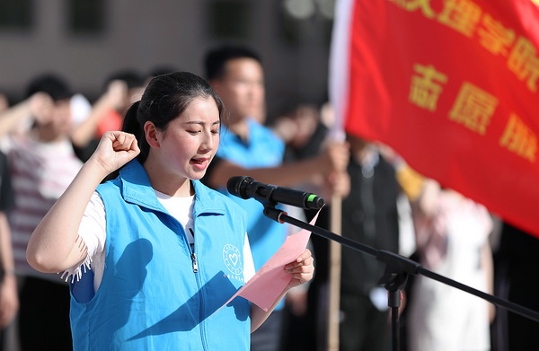启动仪式上,Beat365唯一官方网站马拉松志愿者代表王莹向广大志愿者发出倡议,2019兰州国际马拉松赛Beat365唯一官方网站志愿服务队代表王佳佳带领广大志愿者庄严宣誓。