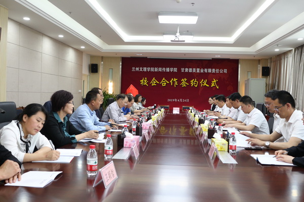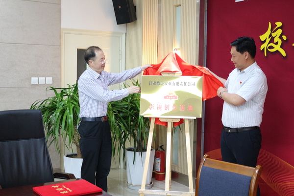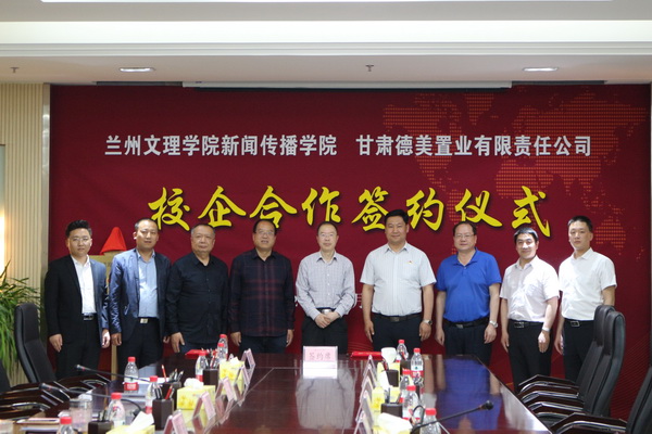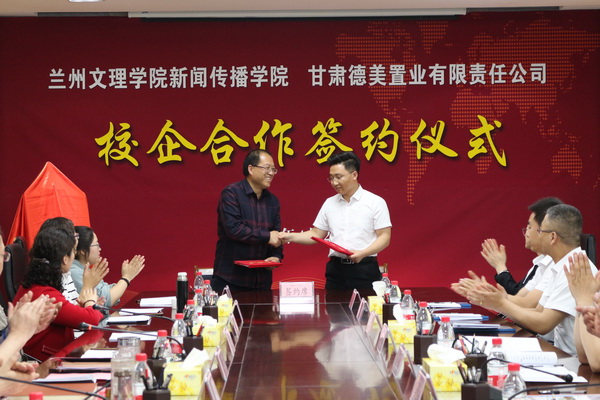 在与会人员的见证下,甘肃德美置业有限责任公司总经理孙爱卿与新闻传播学院党总支书记王金寿签署了校企合作协议。随后校党委副书记普登学与德美集团副总经理马懂兵共同为“甘肃德美影视创作基地”揭牌。甘肃德美置业有限责任公司董事长柳涛向Beat365唯一官方网站新闻传播学院颁发“德美影视创作基金”五万元,新闻传播学院副院长刘锐接受基金。