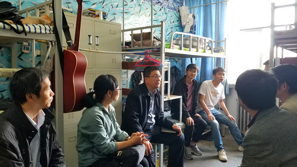 2019年5月14日,校纪委书记李先锋深入所联系的化工学院16级应用化学1班9-502宿舍,和学生们亲切座谈交流。化工学院院长展惠英、副院长师海雄、学生处副处长王金平、后勤处副处长王振乾、学生处马建顺老师、学院学生工作办公室朱梓瑞老师陪同。