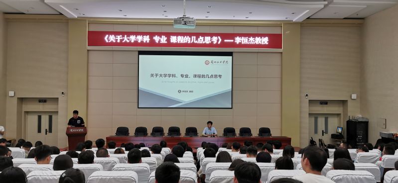 报告会上,李恒杰教授首先对三大基本建设的主题内涵作了分享,他指出:“学科建设、专业建设和课程建设是高等院校的三大基本建设,三大建设的水平、质量、状态决定了学校的办学类型、层次和特色,三者建设既各有侧重,又相辅相成;一所优秀的高校,必将坚持以学科建设为龙头,以专业建设为依托,以课程建设为基础,统筹规划,整体推进”。其次,他对当前我国应用型本科大学生必备素质做出了新的分享和要求,依次从宏观、中观、微观三个角度剖析了模块化教育教学体系的本质内涵;提出了“人人在教育、事事有教育、终生受教育”的大教育观,并深刻解析了全程、全面、全体的三全教育理念。最后,李恒杰教授以考研为例,向同学们深入浅出的讲解了当前我国教育体制内13个学科门类的划分,以及以工学里面的计算机科学与技术大类为例介绍了下属计算机专业,并以学院的数字媒体技术专业为例介绍了它的支撑课程,从而向大家展示了一个完整的学科建构。听完此次报告,在场学生都觉得获益良多,受益匪浅。