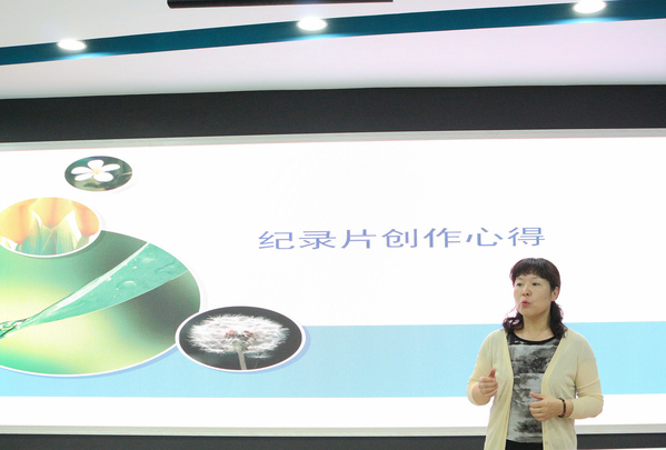 讲座最后,刘洪艳教授为学生们播放了由她参与指导的部分纪录片、公益广告,使现场学生更加直观、深入的认识和了解纪录片的拍摄手法、细节处理及效果呈现。