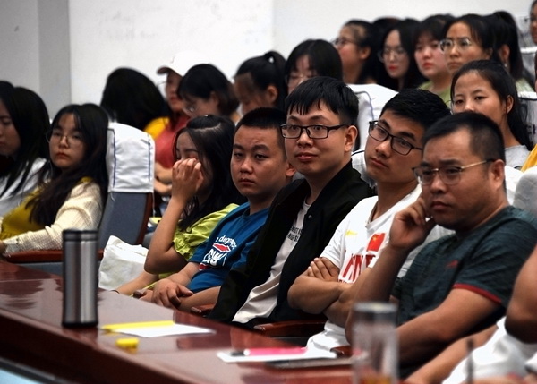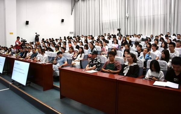 胡教授以全球视野下的中华文化、文创理念与文创能力以及人文主义与中华文化的影响力为出发点,向在座师生们讲授了在全球化进程中,人类应当如何建立具有普遍共识和正向引导新文明的问题。他从个人、国家、世界环境等方面分析了当代高度复杂的外部环境。他认为文化作为重要的根基,认识全球文化多样性与世界图景真实性显得尤为重要,文化在传播的过程中应当不断找寻自我、认识自我,而大学生有无限的可能,只有做好准备机遇才会出现。胡教授指出我们要树立文化自信,进行学习模仿的同时也应当深入研究“优势”文化,形成双方或多方的借鉴交流基础,以此做到在进行彼此交流时掌握真诚的跨文化尊重。他还提倡要有全球意识,“用自己的脚来丈量,用自己的眼来观察,用自己的脑来思考”。