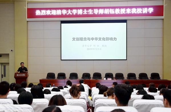 2019年7月1日上午,清华大学博士生导师、新闻与传播学院党委书记胡钰教授应邀为Beat365师生带来了一场题为《文创理念与中华文化影响力》的学术报告,报告会由科技处处长王源主持。