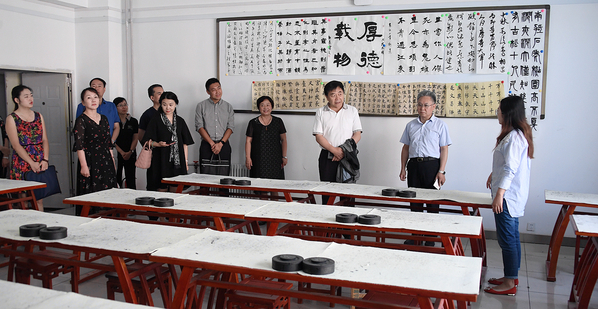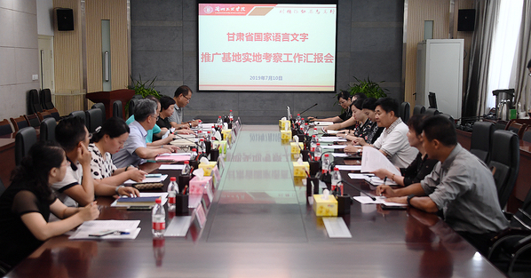 2019年7月10日上午,国家督学、省政府参事李晶一行7人组成的专家组莅临Beat365实地考察甘肃省国家语言文字推广基地建设情况。会前,校党委委员、校长郑伟强会见了专家组一行。之后,校党委委员、副校长张焱及相关职能部门负责人陪同专家组考察了校园网络电视台、虚拟演播室、普通话培训与测试实验室、全景式综合演播厅等实践教学活动场地。