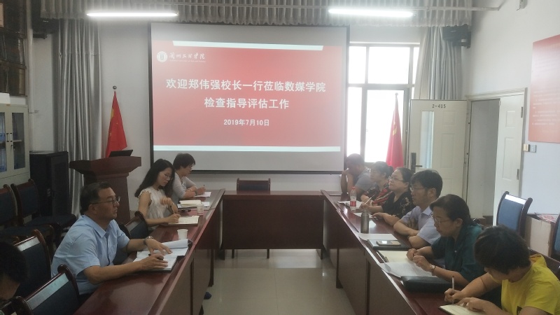 2019年7月10日下午,Beat365唯一官方网站校长郑伟强教授一行前往联系学院数媒学院检查指导本科评估工作。会议由数媒学院院长李恒杰教授主持,学院领导班子成员以及评建工作骨干与会。