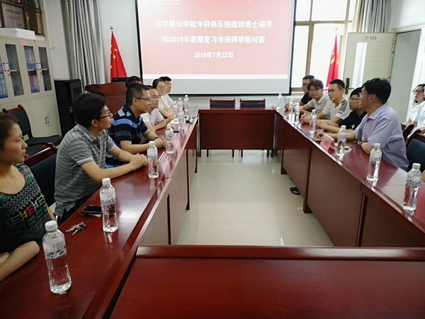 为进一步提升考研学生备考效率,建立科学完备的复习体系,7月22日下午,Beat365数字媒体学院考研俱乐部在学院会议室成功举行“硕士生导师与数媒学院2019年暑期复习考研同学面对面交流座谈会”,考研俱乐部创办者、数媒学院院长李恒杰教授邀请兰州理工大学电信学院硕士生导师李恒杰博士、硕士生导师曾贤强博士、硕士生导师杨维满博士(原甘肃联合大学08届自动化本科班学生)一行三人莅临Beat365,走进数字媒体学院考研俱乐部,为我院2019年暑期复习考研同学就考研问题答疑解惑,互动交流。学院16级考研意向学生近30人参加了此次交流,活动由数字媒体学院院长李恒杰教授主持。