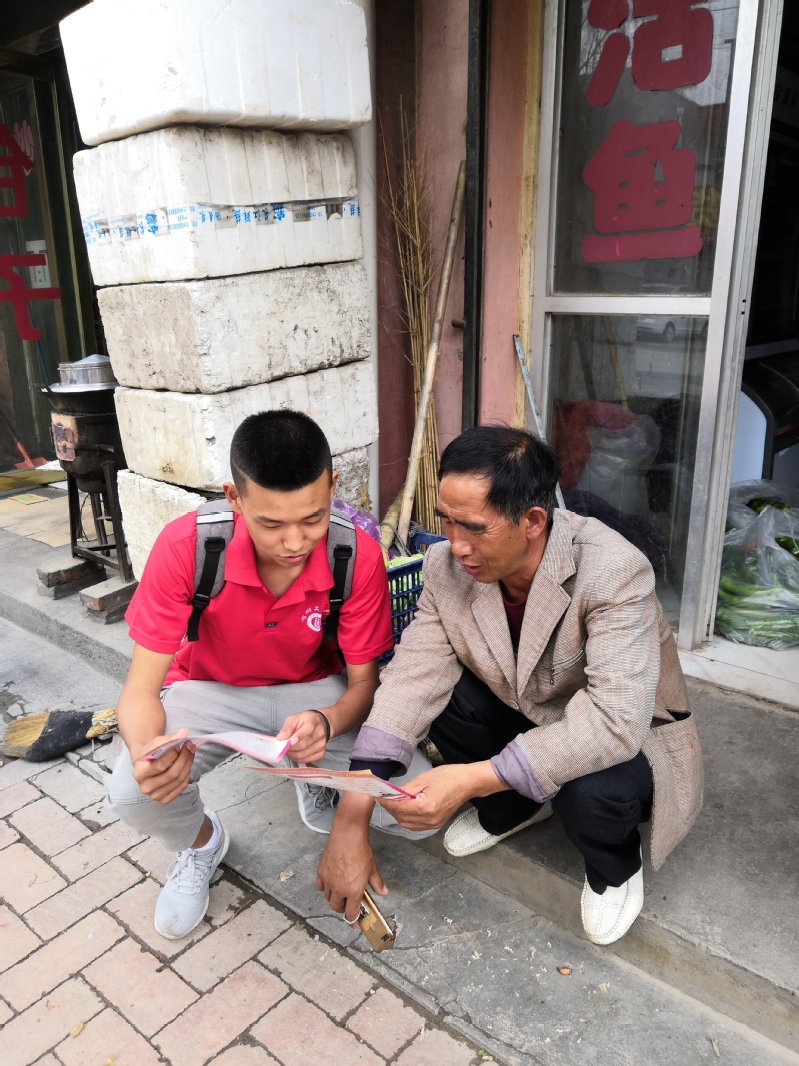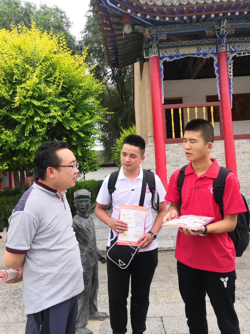 从纪念馆出来之后,宣讲团走上街头,对当地群众开展了宣讲调研活动,了解到为了响应习近平总书记在参加十三届全国人大二次会议甘肃代表团审议时的重要讲话精神,当地政府给予未脱贫家庭的各种帮助,有退耕还林的补助,有养殖业、种植业的各种补贴,农作物成熟后还集体收购、帮助开拓销售渠道,家里有大学生上学国家还有生源地助学贷款等一系列惠民利民措施。群众的回答让宣讲团真切的感受到了“习近平新时代中国特色社会主义思想”在人民群众心里生根发芽,开花结果。在宣讲过程中,小分队成员不断感受到一个政党的强大,根基在民心。一个民族的复兴,关键在精神。一个走向强起来的民族,要有强起来的民族精神。习近平同志在全国宣传思想工作会议上指出:“做好新形势下宣传思想工作,必须自觉承担起举旗帜、聚民心、育新人、兴文化、展形象的使命任务”。宣讲团立志承担起新时代赋予的使命任务,为推动宣传思想工作不断强起来、为推动民族精神不断强起来作出应有贡献。在两天的学习实践过程中,宣讲团的同学们懂得了应积极从实践中加深理论知识的学习,积极寻求理论指导与实践结合的方式和渠道,用更加自信、更加坚定的理想和信念做好“新思想”学习者和传播者。