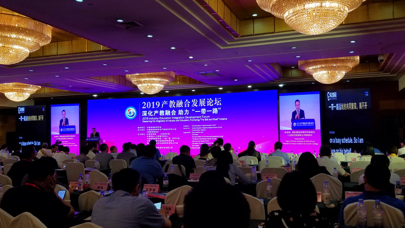 为深入贯彻全国教育大会精神,搭建高校与企业合作平台,交流校企合作经验,探讨产教融合育人机制,积极推进校企合作和产教融合,由中国高等教育学会指导,中国高等教育学会产教融合研究分会、中国教育电视台主办,北京广慧金通教育科技有限公司承办的深化产教融合、助力“一带一路”——2019产教融合发展论坛7月19日在河北廊坊召开。校长郑伟强率领教务处处长展惠英等一行三人参加了此次论坛。