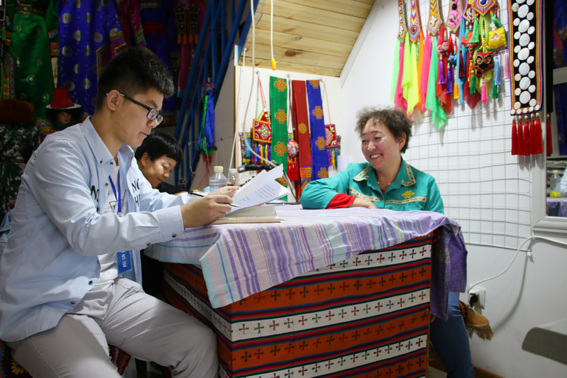 下午,调研团成员走访了肃南县非遗文创产品经营者以及群众。对裕固族非遗文创产品的经营现状和群众对非遗文创产品的需求状况进行了访谈和问卷调查,为非遗文创产品开发与营销策划收集了第一手资料。