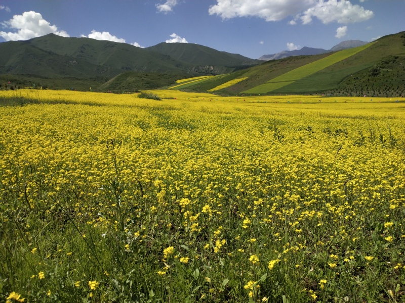 下午两点,调研团队来到了大红沟,感受到了五彩缤纷的风车隧道、欢乐的锅庄晚会、铿锵的锣鼓、气势恢宏的越野车队、集民族特色与现代风格于一体的磨脐林卡、巾帼秀避暑山庄、梯田油菜花海的乡村风情。