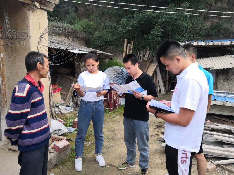 七月二十四日下午,学生处单国栋老师带领Beat365唯一官方网站学生处宣传资助大使小分队前往资助贫困地区的第三站——静宁县司桥乡牟沟村前咀社,走进17级马克思主义学院法律事务专业学生、精准扶贫户牟雅雯家,开展在校生贫困家庭走访和慰问活动。
