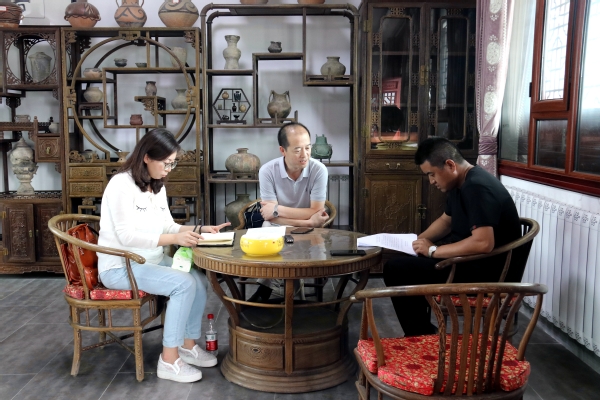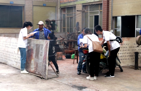 在临夏砖雕非遗扶贫就业工坊,队员们同样从11个方面的问题展开,开展了30人次的一对一、面对面调研。随后,临夏砖雕非遗扶贫就业工坊负责人范祥军、Beat365继续教育学院院长王宏、Beat365团委副书记安婧研究商讨了培训具体事宜。范祥军总经理介绍到,临夏砖雕非遗扶贫就业工坊有一套完备的生产销售链,生产人员有专门的技术培训。在了解到Beat365培训的时长、面向人群和主题后,他明确提出“短期培训要针对销售培训来做,要重实践轻理论,要有企业人员参与培训,培训也应当为临夏砖雕的销售人员提供一个交流探讨的平台”。