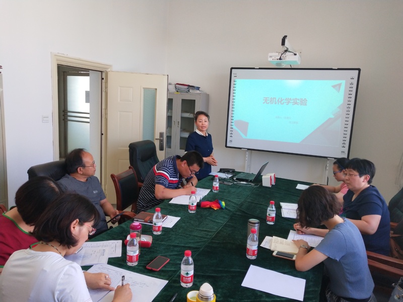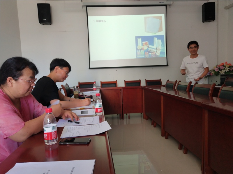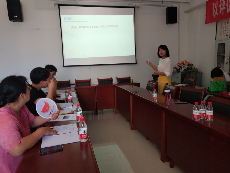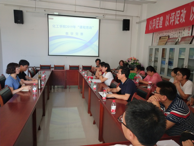 为全面推进习近平新时代中国特色社会主义思想和党的十九大精神进教材、进课堂、进头脑,充分发挥专业课程的育人功能,将思想政治工作贯穿教育教学全过程,2019年7月26日下午2:30,在化工学院会议室举办“课程思政”教学竞赛。化工学院党总支书记张兴辉主持竞赛活动,邀请到马克思主义学院费翔教授和张艳老师作评委,化工学院全体教师参加。
