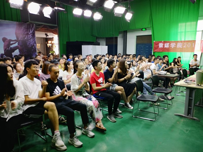 7月31日,数字媒体学院在南校区校企合作影视实训基地—西部影视空间召开2019年度暑期数字媒体数字媒体技术、视觉传达设计(数媒方向)专业夏令营成果汇报会,本次汇报会分别由负责此次数字媒体专业夏令营的两家企业主管主持召开。出席此次汇报会的有数字媒体学院院长李恒杰教授、创业就业办主任姚林、北京水晶石教育公司张建铖总经理、西安爱克斯未来文化科技有限公司谢飞董事长等公司高层管理人员,数字媒体学院2016级数字媒体技术、视觉传达设计(数媒方向)全体参营本科学生参加了本次汇报会。 汇报会上,李恒杰院长首先对水晶石和爱克斯未来两家企业在此次数字媒体学院暑期夏令营工作中的支持表示真诚的感谢,对在营期内付出辛苦工作的各位培训主管致以崇高慰问。他指出:“为期二十天的暑期专业夏令营,以校企合作的方式将学校理论知识与企业项目实战经验相结合,极大地提升同学们项目实战能力,开拓学生视野,深层次了解企业文化与行业知识,我感到此次夏令营非常的成功和有意义。