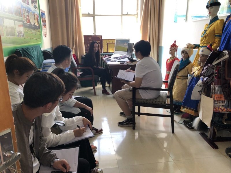 下午调研团来到了肃北县文化馆非遗室,非遗室孟主任热情的接待了同学们,并与同学们进行了座谈。她向同学们介绍了肃北县整体非遗项目保护现状,并向同学们展示了非遗项目的相关资料整理情况,还说到了基层单位对非遗项目保护工作的一些困惑和问题,使同学们对肃北县非物质文化遗产的保护与传承有了一个全面的把握。随后同学们来到了肃北华夏文明传承创新区展厅进行了参观。通过参观,使同学们深入了解到肃北县的基本状况、民族结构、发展现状以及未来发展计划。