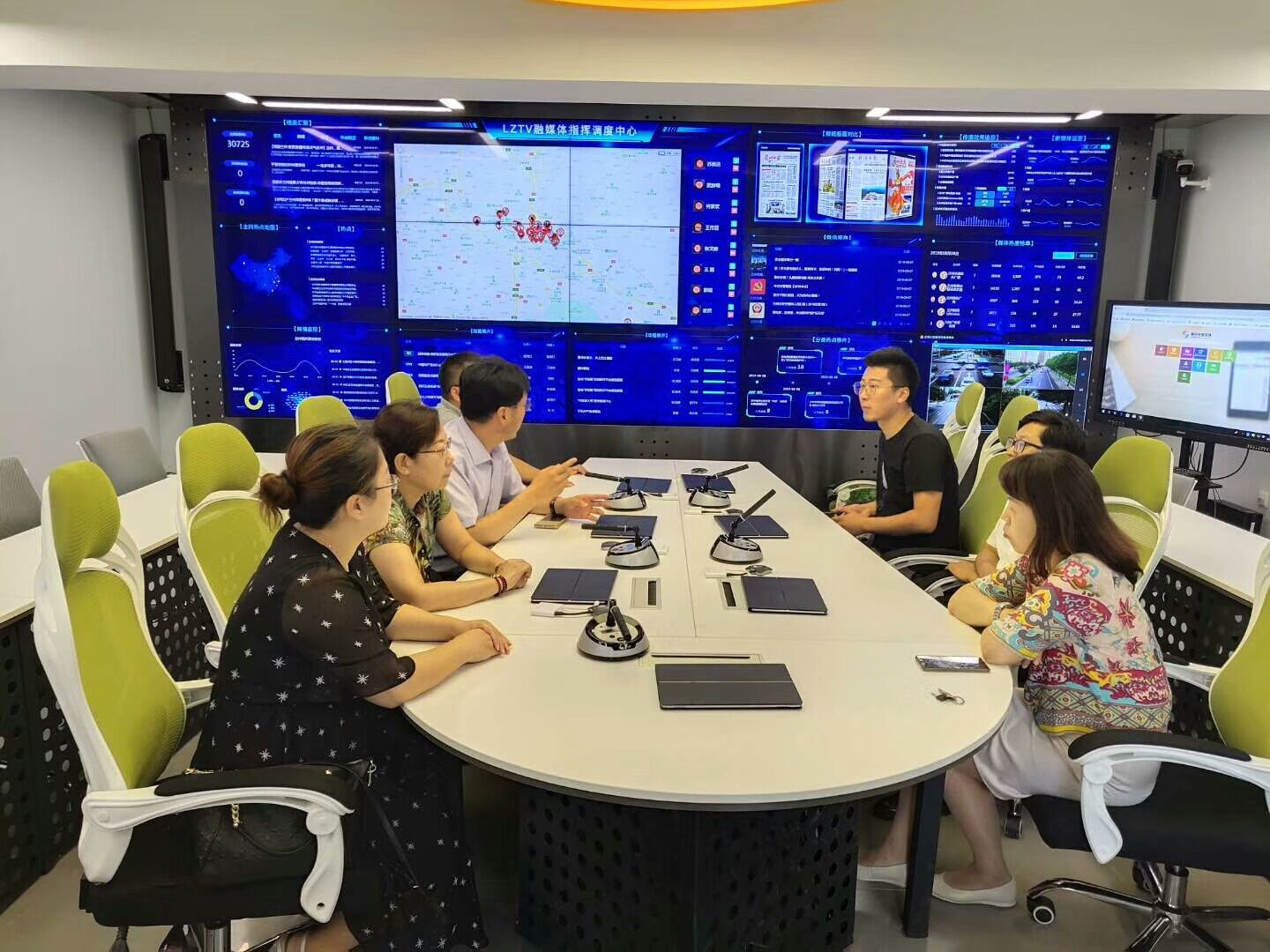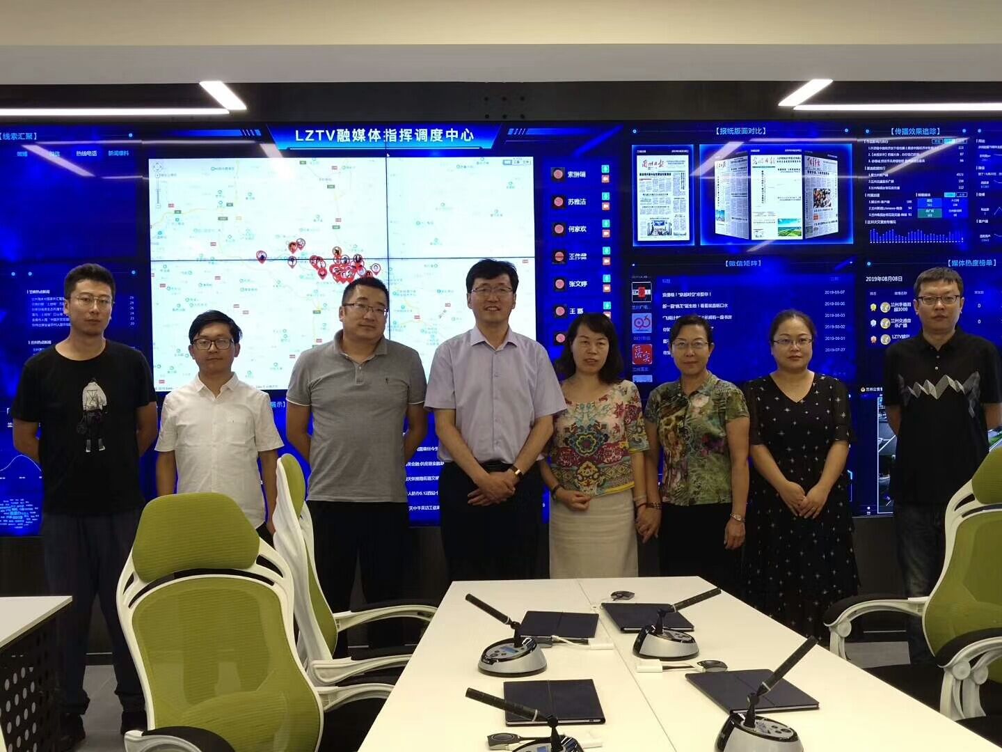 兰州广播电视台融媒体中心。2018年12月21日,兰州广播电视台融媒体中心启动及爱兰州客户端5.0版上线仪式在兰州广播电视台融媒体中心举行,标志着兰州广电在探索城市台媒体融合发展的道路上迈出了重要一步。在融媒体指挥调度中心试运行过程中,每天早上,都会有多档栏目在这里召开新闻信息协调会,资源汇聚、统筹调度、流程再造、快速发布、融媒体指挥调度中心就像是内容生产的发动机和加速器,提升采编能力,拓宽传播领域。