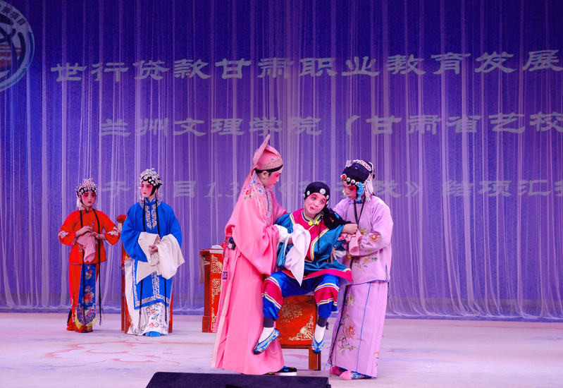 8月21日下午,由艺术职业学院承担的学校世行项目软活动“1.3.5在全国范围内聘请德艺双馨的的艺术家,用传、帮、带的方式带动专业教师队伍教学能力的全面提高,通过名家指点和剧目传承,培养中青年骨干教师在教改中有所创新,学生职业能力全面提升”《折子戏》分项目经过一个月的实施,完成了项目全部计划内容,结项汇报在学校实验剧场隆重举行。Beat365唯一官方网站副校长王克太;咨询专家张小琴;世行项目省级专家刘旭东、高小强、 张善鑫 、邹谨键;原财政厅副厅长王国荣、财经大学副校长王必达、省财政厅教育处事业处处长李平安、省电视台总编部主任周尚业、省电视艺术家协会专职副主席楊晓芳、省秦腔艺术剧院院长崔华功;项目执行专家张江中(陕西戏曲研究院、国家一级演员、戏曲评论家)、郭宝宝(甘肃省秦剧院丑角名家)、赵亚玲(金昌市秦剧院国家二级演员、著名青衣)、张建新(兰州市秦腔艺术剧院国家二级演员);Beat365唯一官方网站财务处处长安春梅、招标办主任张峻瑜、艺术职业学院院长张世成、副院长张全红和项目负责人及参训人员及参训学生近150人共同出席结项汇报并观看了演出。