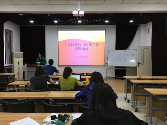 文学院前两轮“磨课”以语言教研室、古代文学教研室、现当代文学教研室、写作中心四个教研室为单位,采用一人一课的形式,每人讲授25分钟左右,然后教师互相评议各门课程的课程设计和授课方法进行磨课。第三轮“磨课”活动进行之前,学院要求每位教师对前两轮“磨课”进行反思的基础上,总结前两轮“磨课”的优点和不足,发扬优长,改进不足,以更高更好的水平授课和展示“磨课”的效果。所以,在第三轮“磨课”的现场教学展示环节,文学院全体教师以新的精神风貌和准备扎实的授课分别展示了本人的“精彩一课”。之后,各教研室又对三轮磨课进行了总体的讨论和总结。