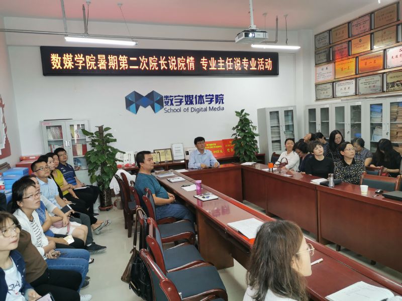 8月22日下午,数字媒体学院在学院会议室召开“2019暑期第二次院长说院情、专业主任说专业”会议,数字媒体学院全体教职工参加本次会议,会议由数字媒体学院院长李恒杰教授主持。