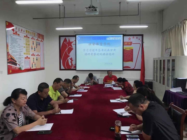 8月26下午,社会体育学院全体教工在党员活动室认真学习习近平总书记考察甘肃重要讲话和指示精神,学院党总支书记陆克珠教授主持并领学。通过学习热议,大家一致表示要不忘初心牢记使命,坚持“以本为本” , 做好“四个回归”,“坚定信心开拓创新真抓实干团结一心开创富民兴陇新局面”。