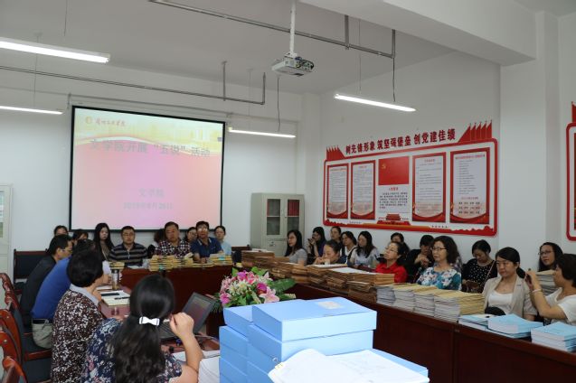 8月26日至8月27日,文学院以提高教学水平,提升人才培养质量,促进迎评促建工作,凝聚人才培养共识为目的,围绕迎评促建进行了院长说院情,教学副院长说教学管理,学生管理副院长说学风建设,系主任说专业,教师说课程的“五说”活动,全院所有教工参加了本次活动。