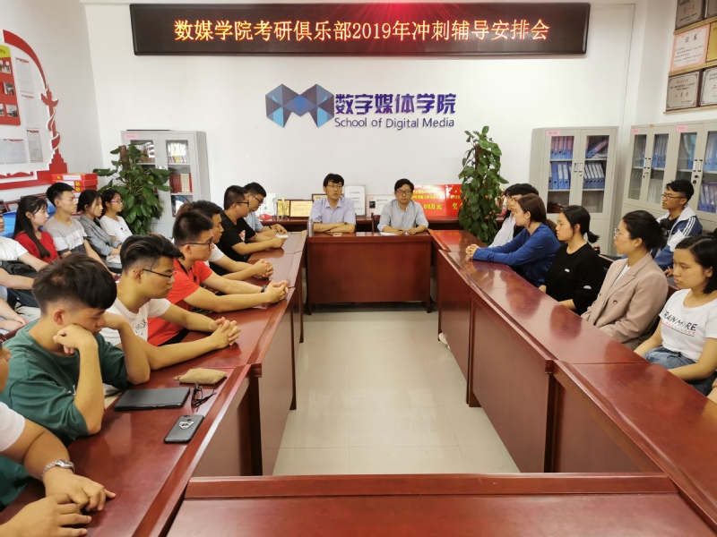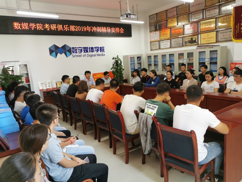 为切实做好考研辅导工作,努力提高学生的考研文化课水平,数字媒体学院考研俱乐部在2018届和2019届考研成果的基础上总结经验,于9月4日中午在学院会议室,举办了2019年冲刺辅导安排会,会议由数媒学院考研俱乐部发起人院长李恒杰教授主持,学院40余名学生参加了会议。