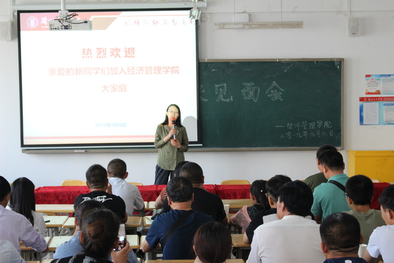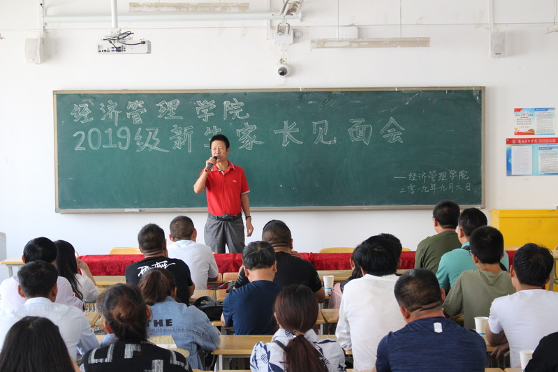 9月6日上午,经济管理学院在教学楼3-704召开了2019级新生家长见面会,学院院长刘畅、学工办主任焦惠兰、全体新生班主任出席本次见面会,100余名新生家长参加。