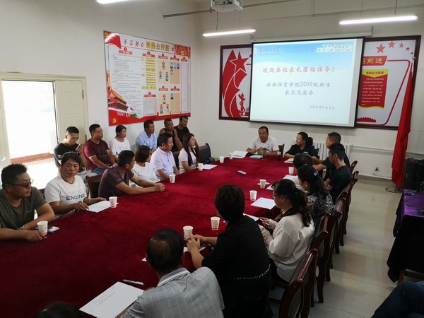 9月5日下午,社会体育学院在党员活动室召开了2019级新生家长见面会。党总支书记陆克珠、班主任付勃翰、辅导员王国潇参加了见面会,副院长胡曦霞主持。